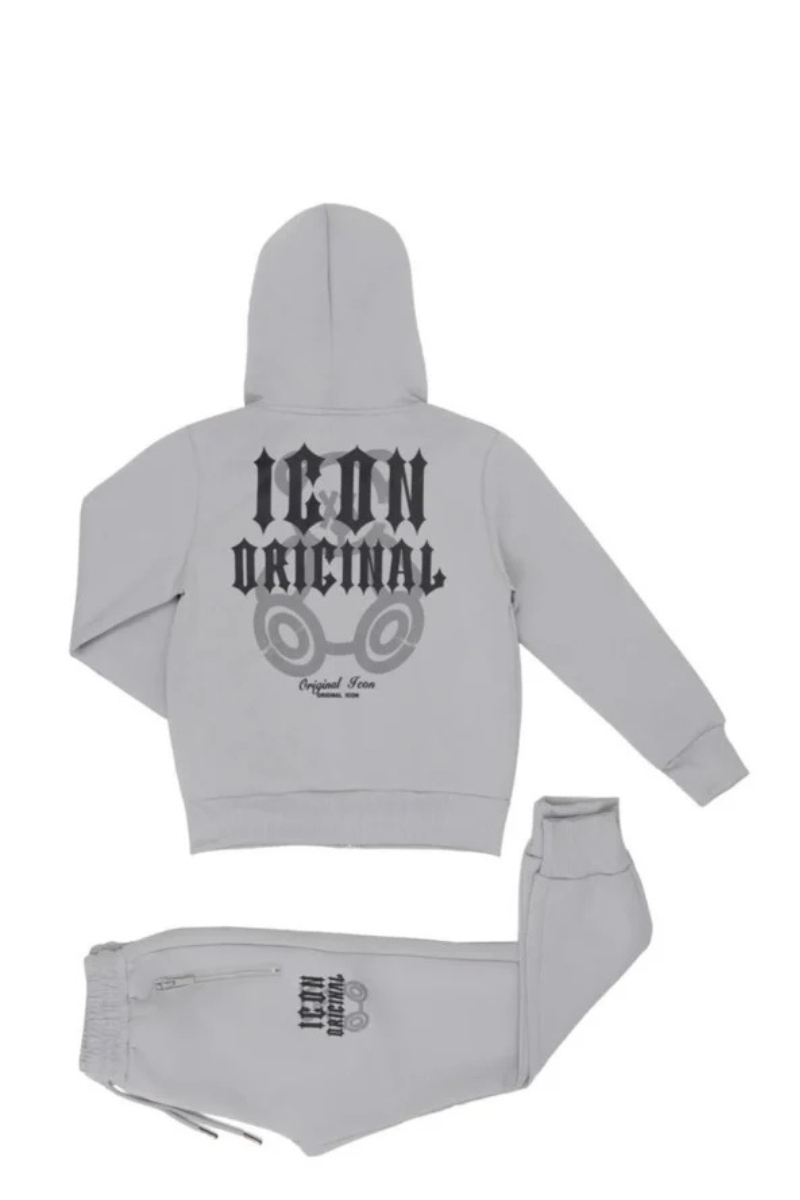 Grijs Icon joggingpak met een strakke en sportieve look.