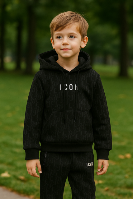 Zwart Icon joggingpak met een strakke en sportieve look.