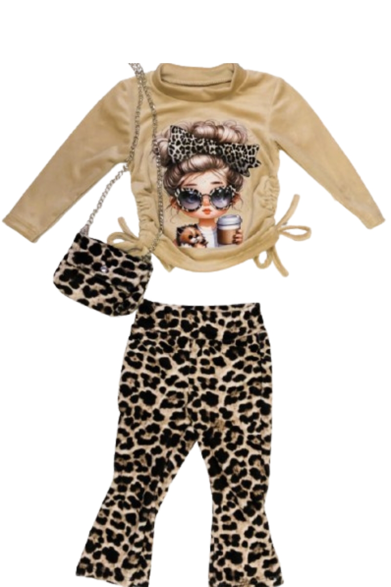 Leopard Legging Set velvet (Met Tasje) -Beige