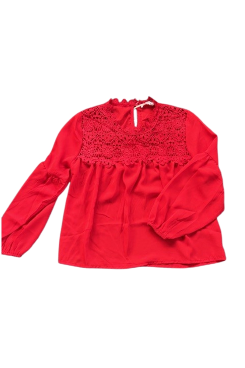 Deze vrolijke rode blouse is een echte blikvanger! Gemaakt van een zachte luchtige stof en afgewerkt met speelse details.