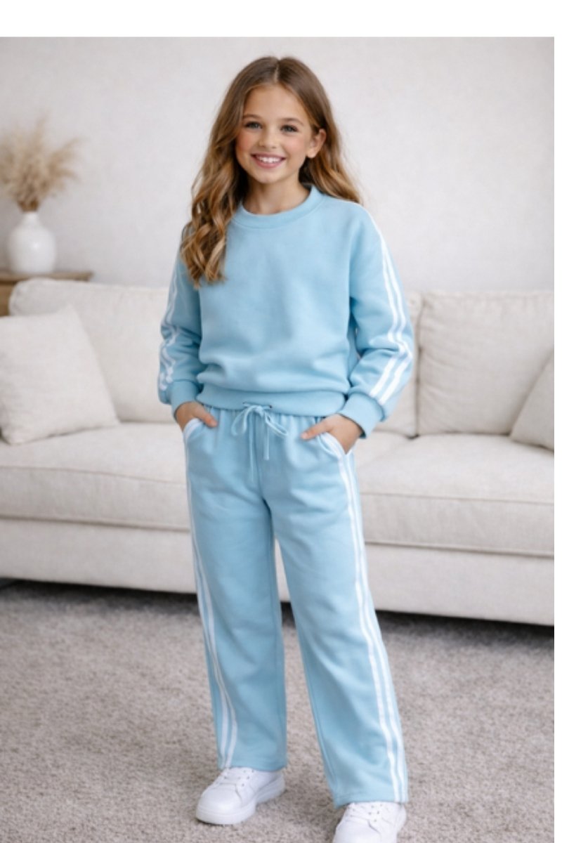 Dit Stijlvolle lichtblauw joggingpak is perfect voor actieve dagen en ontspannen momenten. Het set bestaat uit een zachte sweater met bijpassende broek.
