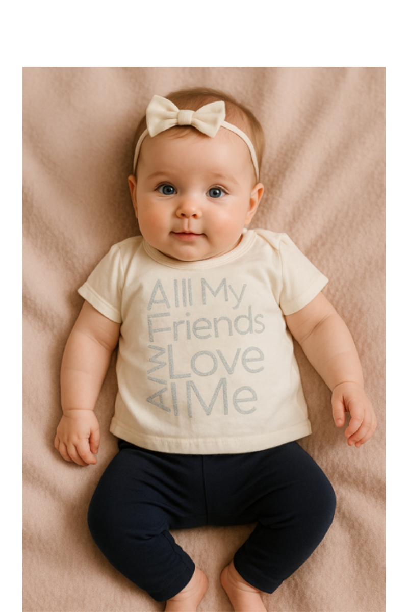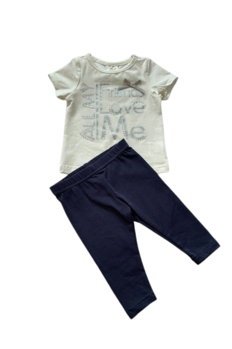 2-delig meisje setje bestaande uit een witte T-shirt en een donkerblauwe legging.