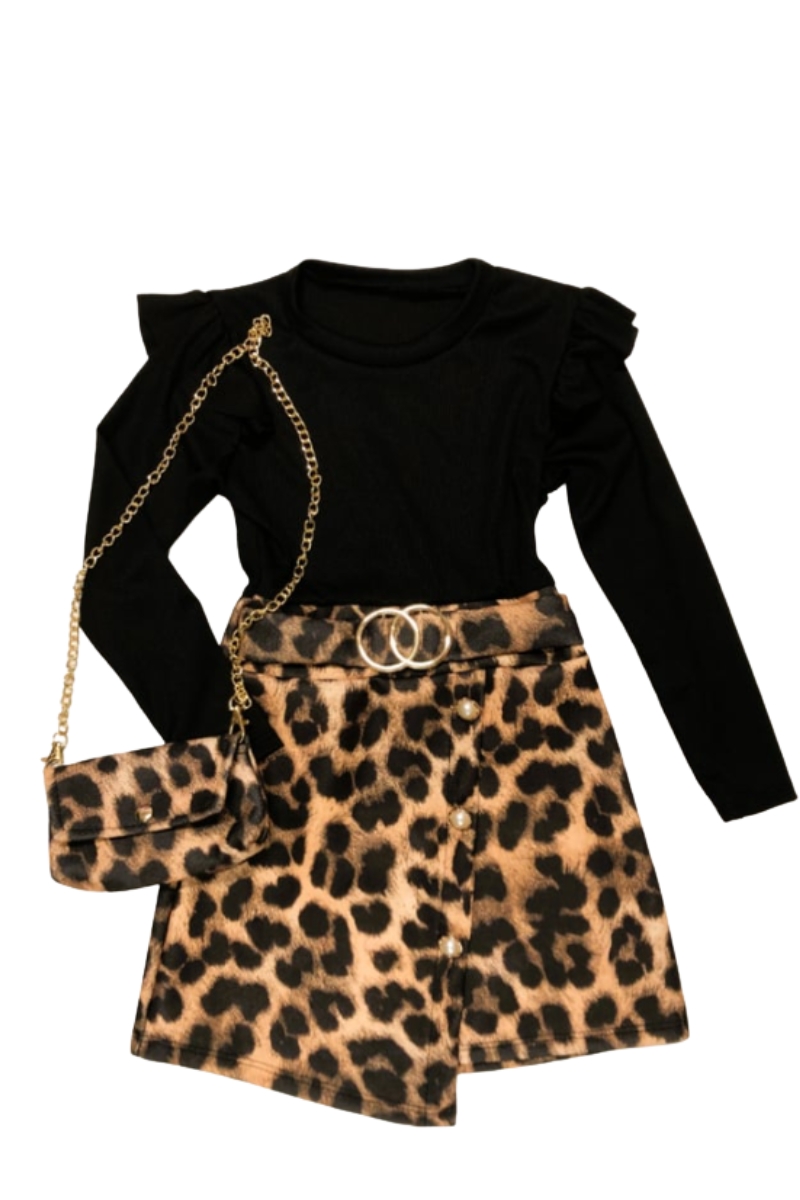 Stijlvol jurkje in het zwart met panterprint en een bijpassend tasje.